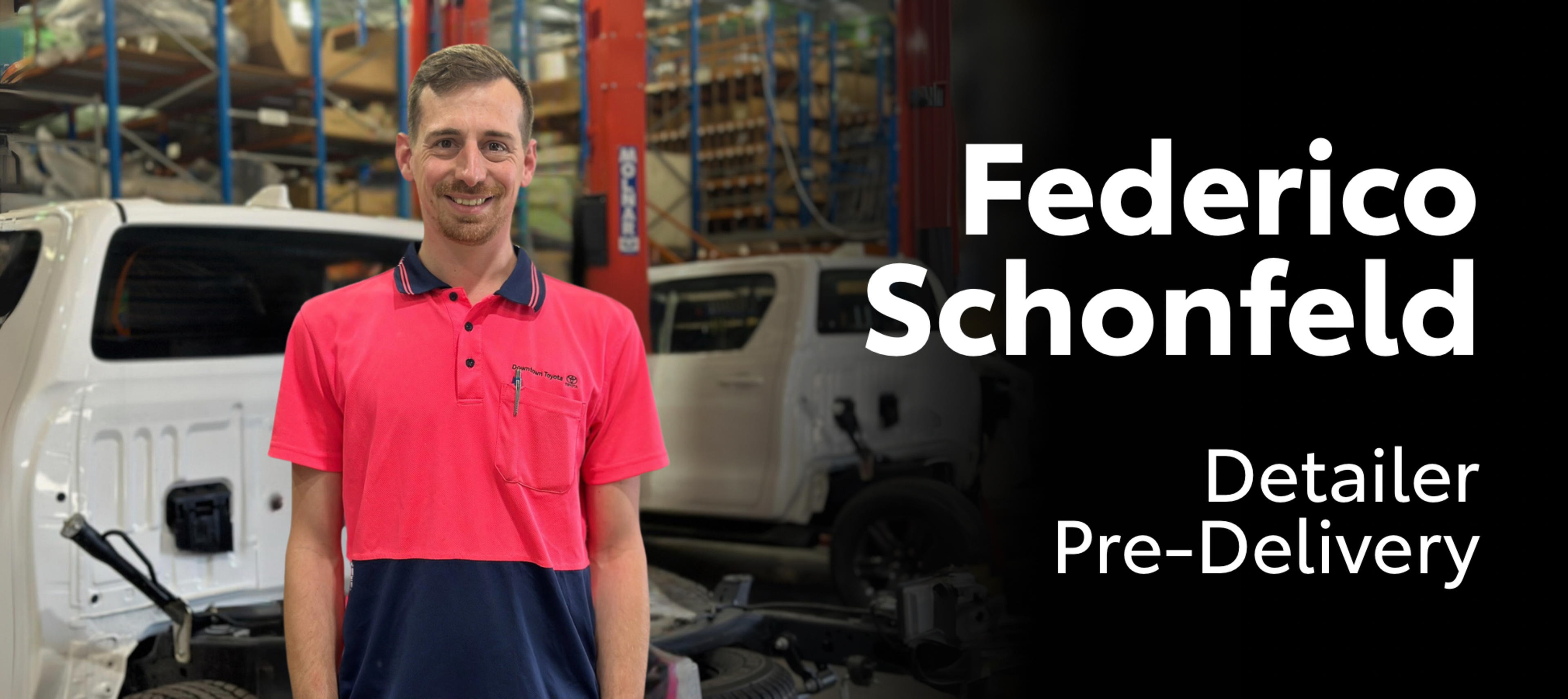 Federico has been with Downtown Toyota for just over two years, but his journey here is anything but ordinary. Before moving to Australia, he worked in the metalworking industry in Argentina, operating overhead cranes to load and unload heavy materials. Seeking new adventures and challenges, he made the move to Brisbane and, by chance, came across a job posting at the dealership. Despite having little direct experience in automotive detailing, his lifelong passion for cars inspired him to apply.