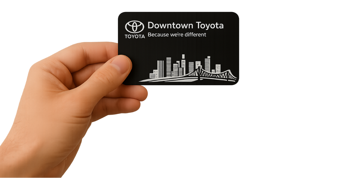 Downtown Toyota is launching two loyalty cards designed to connect our customers with great local businesses. With over 7,500 active service guests and hundreds of new car buyers each year, this is a free opportunity to put your brand in front of a highly engaged local audience.